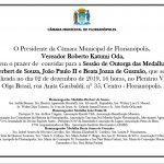A sessão de outorga das medalhas aconteceu no Plenário Vereadora Olga Brasil da Câmara Municipal às 16h.