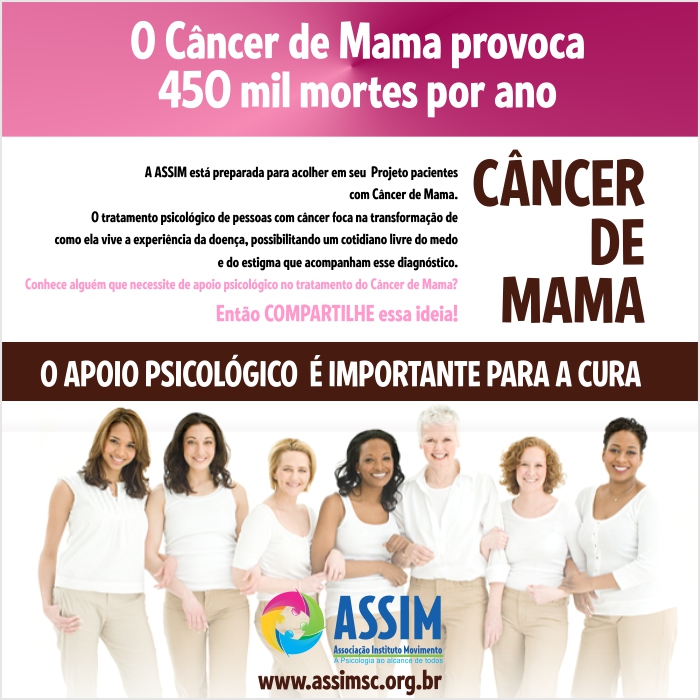 Se você conhece alguém que necessite de apoio psicológico no tratamento do Câncer de Mama pode COMPARTILHAR também essa ideia.
