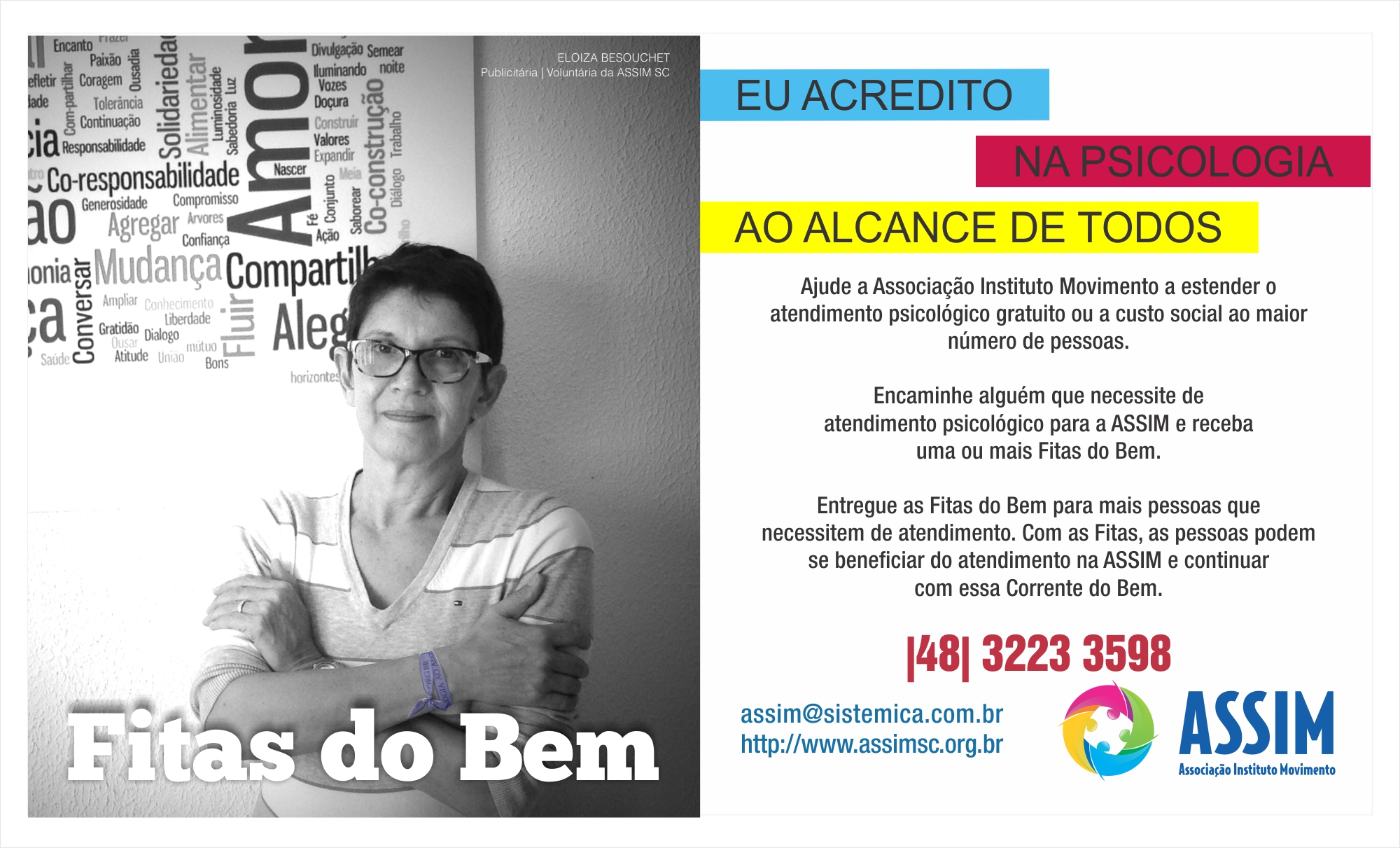 Há quase uma década a ASSIM SC presta atendimento psicológico gratuito ou a custo social para pessoas de baixa renda a partir de uma rede crescente de Psicólogos Voluntários.