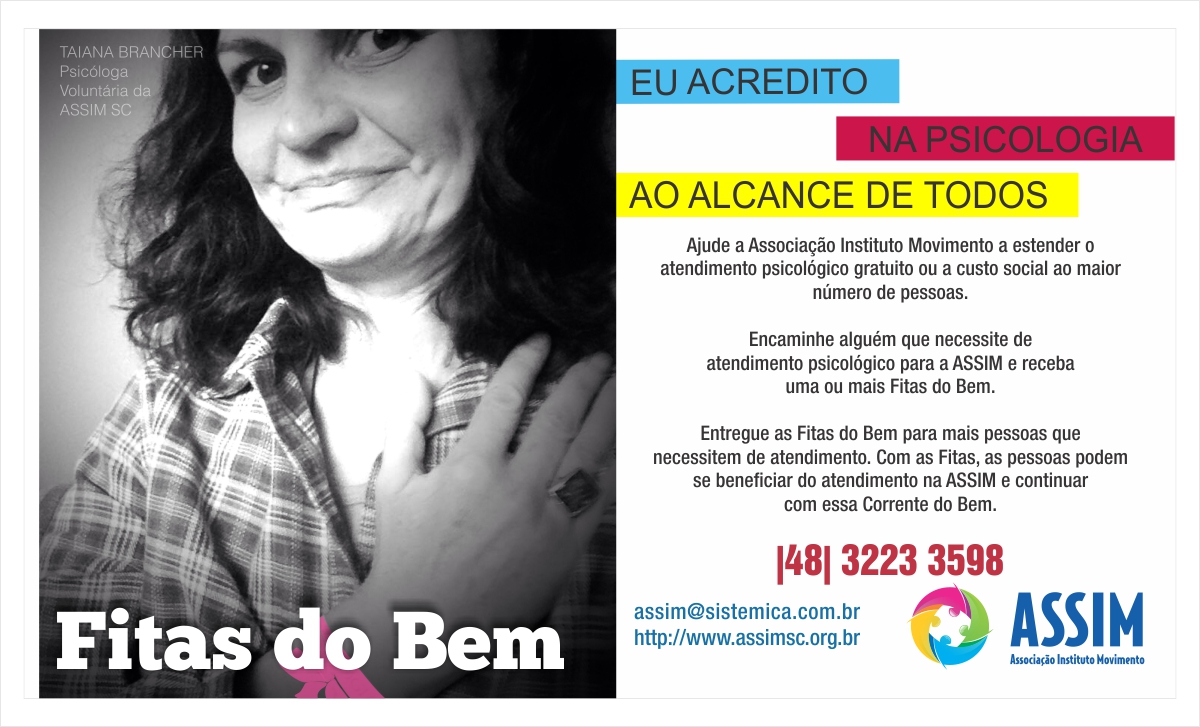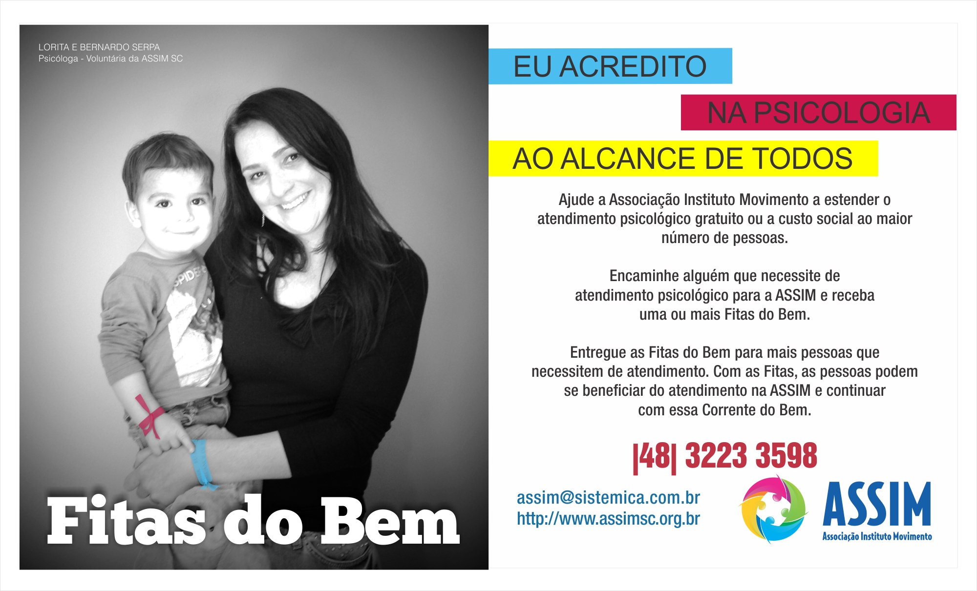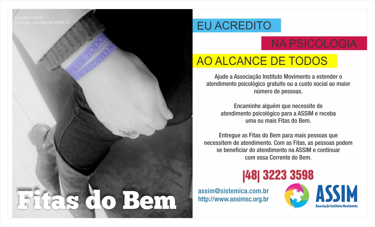 Esse é o objetivo da ASSIM com a campanha Fitas do Bem: Eu acredito na Psicologia ao Alcance de Todos.