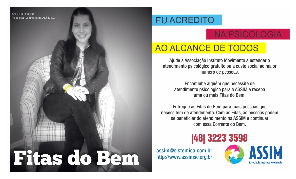 Duas mil pessoas da Grande Florianópolis poderão ser beneficiadas com atendimento psicológico gratuito ou a custo social oferecidos pela Associação Instituto Movimento (ASSIM), que presta atendimento psicológico a pessoas e famílias de baixa renda.